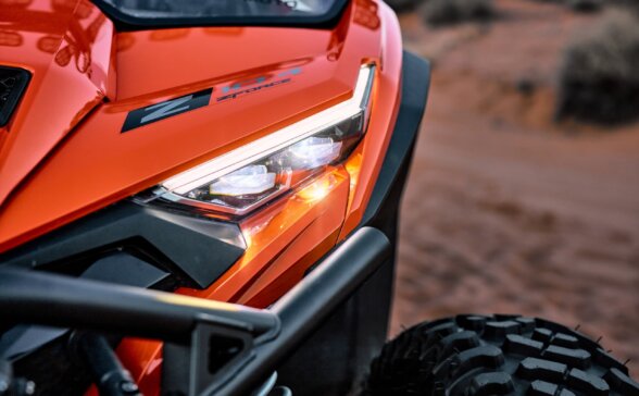 Цей мотовсюдихід вирізняється яскравою кольоровою палітрою та унікальною передньою решіткою радіатора, яку доповнюють передні й задні двері особливого дизайну. Його ультрасучасний салон оснащений 12,3-дюймовою цифровою панеллю приладів для комфортної подорожі.